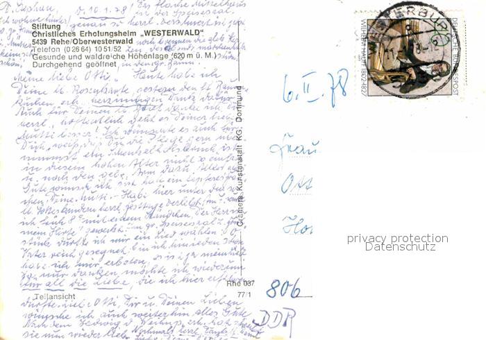 72632486 alte Postkarte Rehe Westerwald Stiftung Christliches Erholungsheim Westerwald im Winter postalisch gelaufen Erhaltung siehe scans [FriedD77] KatCode: 11110007143285
