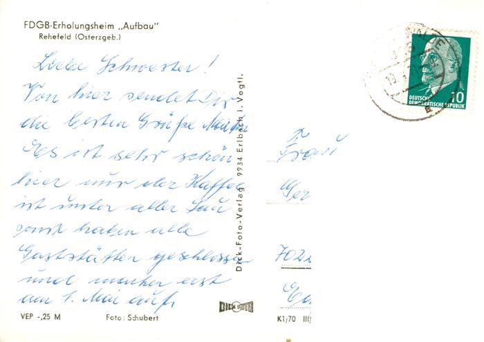 73905608 alte Postkarte Rehefeld-Zaunhaus Altenberg FDGB Erholungsheim Aufbau Diele Speiseraum postalisch gelaufen Erhaltung siehe scans [WerneD78] KatCode: 11110014290010