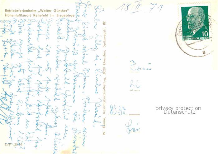 72636073 alte Postkarte Rehefeld-Zaunhaus Betriebsferienheim Walter Guenther Hoehenluftkurort postalisch gelaufen Erhaltung siehe scans [FriedD77] KatCode: 11110014290010