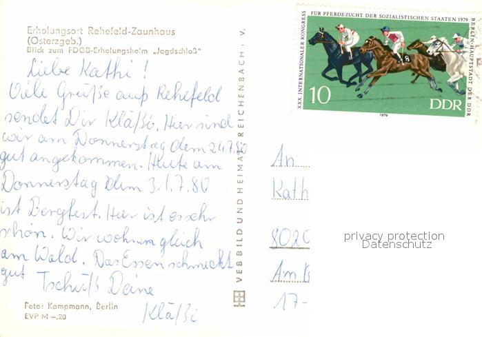 72729928 alte Postkarte Rehefeld-Zaunhaus Erholungsheim Jagdschloss postalisch gelaufen Erhaltung siehe scans [PaolaD17] KatCode: 11110014290010