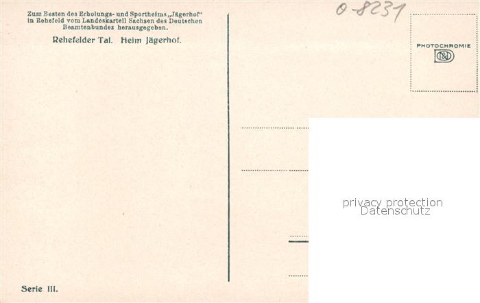 43349531 Rehefeld-Zaunhaus Rehefelder Tal Heim Jaegerhof Erinnerungskarte Photochromie Serie III postalisch nicht gelaufen Erhaltung siehe scans [FriedD77] KatCode: 11110014290010