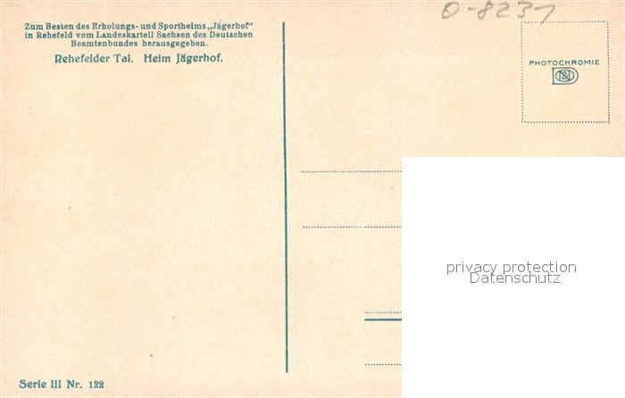43349565 Rehefeld-Zaunhaus Rehefelder Tal Heim Jaegerhof Erinnerungskarte Photochromie Serie III Nr. 122 postalisch nicht gelaufen Erhaltung siehe scans [FriedD77] KatCode: 11110014290010