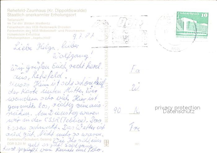 72257274 alte Postkarte Rehefeld-Zaunhaus Tal der Wilden Weisseritz Ferienheime postalisch gelaufen Erhaltung siehe scans KatCode: 11110014290010
