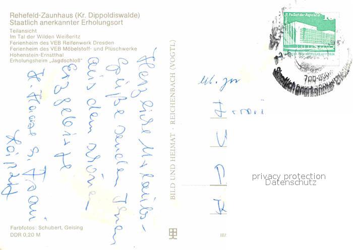 72623771 alte Postkarte Rehefeld-Zaunhaus Teilansicht Tal der Wilden Weisseritz Ferienheime Erholungsheim Jagdschloss postalisch gelaufen Erhaltung siehe scans [WerneD78] KatCode: 11110014290010