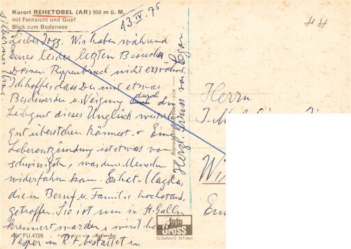 13920056 alte Postkarte Rehetobel Fliegeraufnahme mit Blick zum Gupf und Bodensee postalisch gelaufen Erhaltung siehe scans [WerneD78] KatCode: 11470020070570