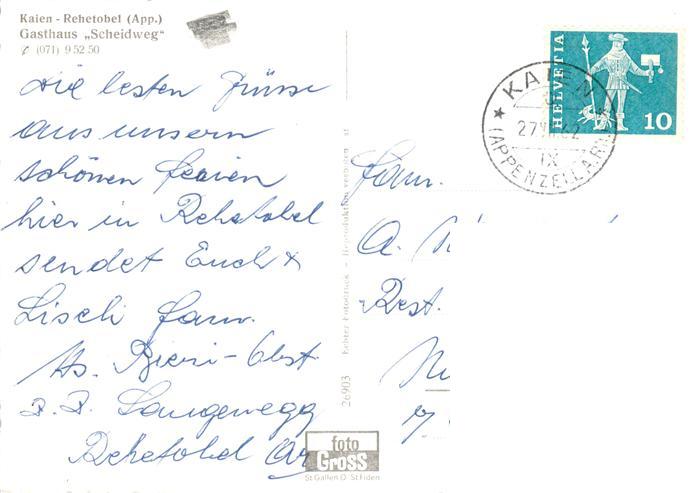 13868729 alte Postkarte Rehetobel Gasthaus Scheidweg postalisch gelaufen Erhaltung siehe scans [FriedD77] KatCode: 11470020070570
