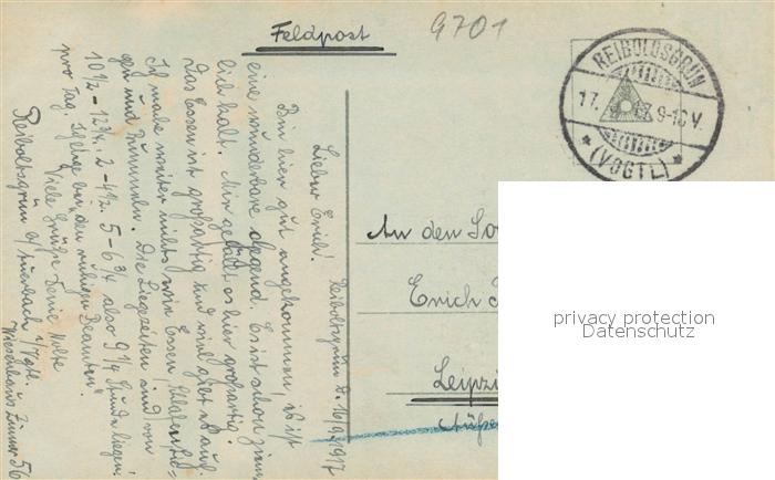 43253531 alte Postkarte Reiboldsgruen Bad Haus am Wald postalisch gelaufen Feldpost Erhaltung siehe scans [FriedD77] KatCode: 11110014178030