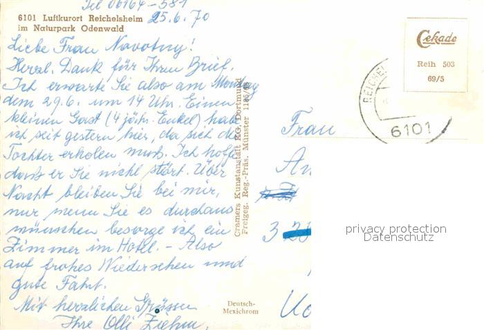 72900304 alte Postkarte Reichelsheim Odenwald Fliegeraufnahme postalisch gelaufen Erhaltung siehe scans [LiesaD40] KatCode: 11110006437013