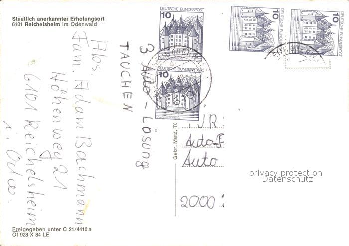 72062767 alte Postkarte Reichelsheim Odenwald Fliegeraufnahme postalisch gelaufen Erhaltung siehe scans KatCode: 11110006437013