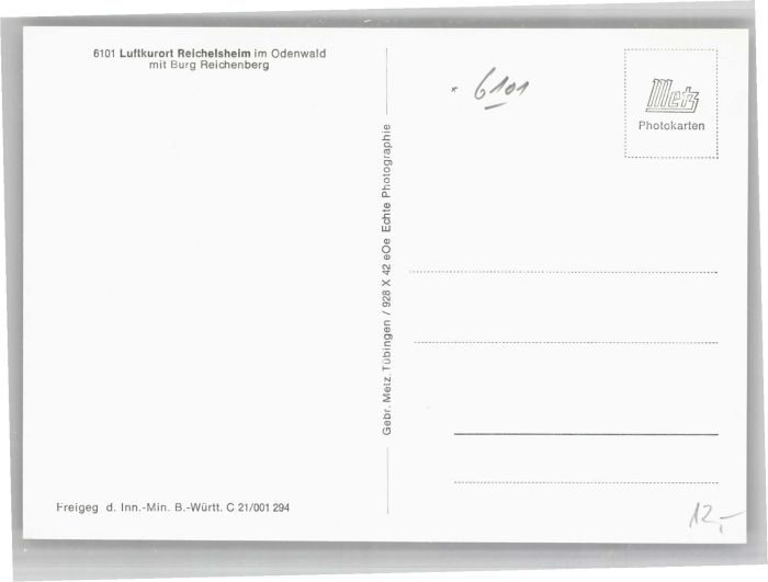 40691100 Reichelsheim Odenwald Fliegeraufnahme Burg Reichenberg KatCode 11110006437013
