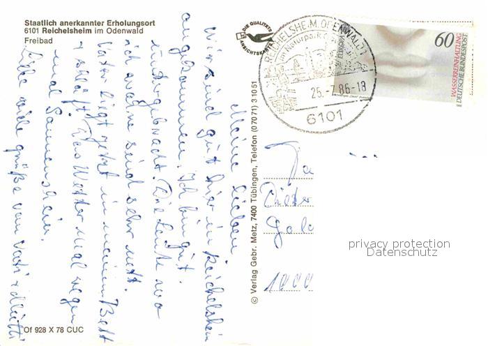 72916527 alte Postkarte Reichelsheim Odenwald Freibad postalisch gelaufen Erhaltung siehe scans [NatalD47] KatCode: 11110006437013