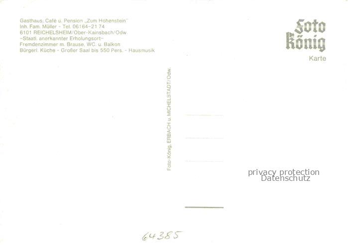 74005961 Reichelsheim Odenwald Gasthaus Cafe Zum Hohenstein postalisch nicht gelaufen Erhaltung siehe scans [WerneD78] KatCode: 11110006437013