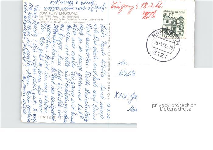 alte Postkarte Reichelsheim Odenwald Gasthaus Pension Zum Fuerstengrund postalisch gelaufen Erhaltung siehe scans
