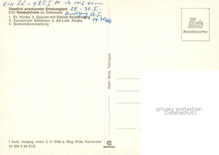 73271435 Reichelsheim Odenwald Kirchen Schloss Sanatorium Goettmann Gemeindeverwaltung postalisch nicht gelaufen Erhaltung siehe scans [KathaD81] KatCode: 11110006437013