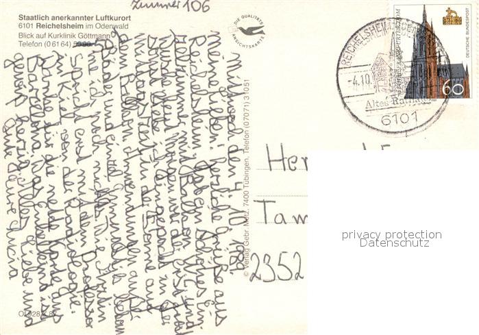 73688421 alte Postkarte Reichelsheim Odenwald Kurklinik Goettmann Luftkurort postalisch gelaufen Erhaltung siehe scans [FriedD77] KatCode: 11110006437013