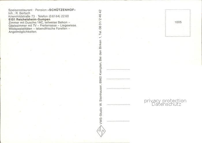 72542903 Reichelsheim Odenwald Restaurant Pension Schuetzenhof postalisch nicht gelaufen Erhaltung siehe scans [AndreD76 kv012box] KatCode: 11110006437013