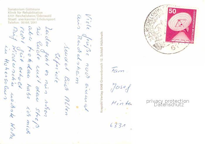 72848320 alte Postkarte Reichelsheim Odenwald Sanatorium Goettmann postalisch gelaufen Erhaltung siehe scans [KathaD81] KatCode: 11110006437013