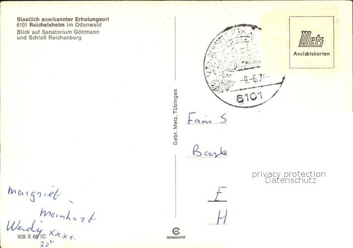 72429778 alte Postkarte Reichelsheim Odenwald Sanatorium und Schloss Reichenberg postalisch gelaufen Erhaltung siehe scans KatCode: 11110006437013