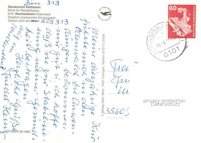 72876948 alte Postkarte Reichelsheim Odenwald Stadtansichten Sanatorium Goettmann postalisch gelaufen Erhaltung siehe scans [AndreD76] KatCode: 11110006437013