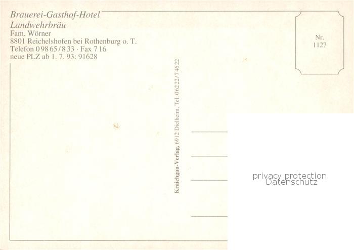 73777793 Reichelshofen Brauerei Gasthof Hotel Landwehrbraeu postalisch nicht gelaufen Erhaltung siehe scans [WerneD78] KatCode: 11110009571205