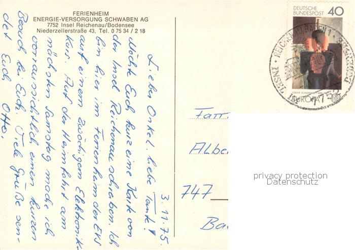 73766302 alte Postkarte Reichenau Bodensee Ferienheim Energie-Versorgung Schwaben AG Aussenansicht postalisch gelaufen Erhaltung siehe scans [LiesaD40] KatCode: 11110008335066