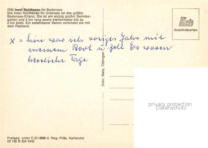 73015224 Reichenau Bodensee Fliegeraufnahme postalisch nicht gelaufen Erhaltung siehe scans [NatalD47] KatCode: 11110008335066
