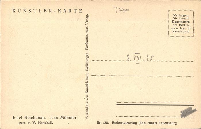 Reichenau Bodensee Münster [Künstlerkarte V. Marschall]