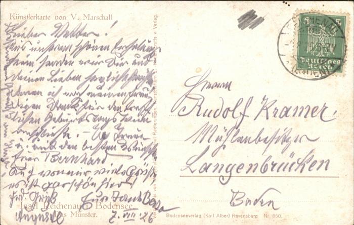 71033336 alte Postkarte Reichenau Bodensee Muenster Kuenstlerkarte V. Marschall postalisch gelaufen KatCode: 11110008335066