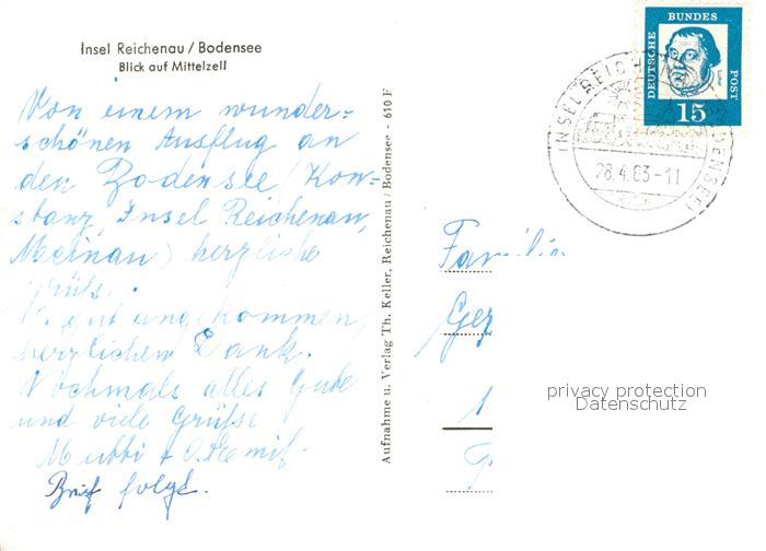 73334493 alte Postkarte Reichenau Bodensee Panorama mit Mittelzell postalisch gelaufen Erhaltung siehe scans [WerneD78] KatCode: 11110008335066