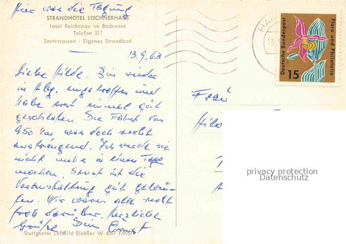 74141980 alte Postkarte REICHENAU Insel Bodensee Strandhotel Loechnerhaus Seeterassen postalisch gelaufen Erhaltung siehe scans [SanaeD93] KatCode: 11110008335066