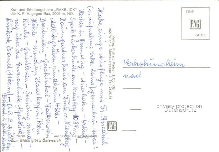 72056065 Reichenau Rax Kur Erholungsheim Raxblick postalisch nicht gelaufen Erhaltung siehe scans KatCode: 11390122031829