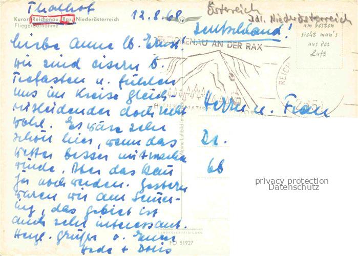 74155918 alte Postkarte Reichenau Rax Niederoesterreich AT Fliegeraufnahme postalisch gelaufen Erhaltung siehe scans [WerneD78] KatCode: 11390122031829