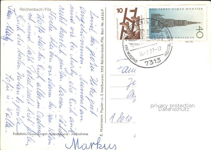 72496283 alte Postkarte Reichenbach Fils Panorama Schwimmbad postalisch gelaufen Erhaltung siehe scans KatCode: 11110008116058
