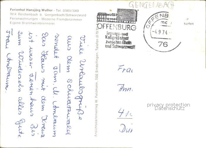 72182453 alte Postkarte Reichenbach Gengenbach Ferienhof Hansjoerg Wussler postalisch gelaufen Erhaltung siehe scans KatCode: 11110008317034