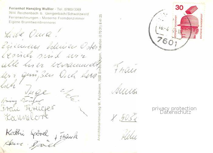 72855650 alte Postkarte Reichenbach Gengenbach Ferienhof Hansjoerg Wussler postalisch gelaufen Erhaltung siehe scans [AndreD76] KatCode: 11110008317034