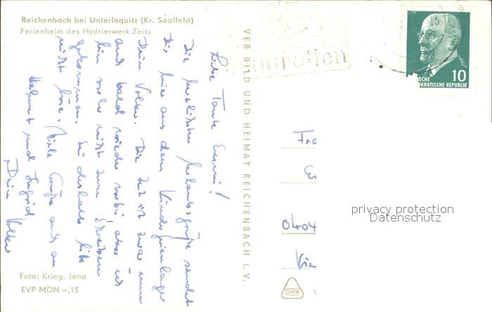 71982342 alte Postkarte Reichenbach Hermsdorf Ferienheim Hydrierwerk Zeitz postalisch gelaufen Erhaltung siehe scans KatCode: 11110016074075