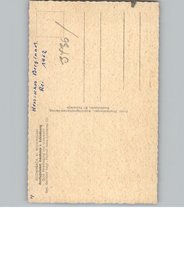 31129542 Reichenbach Melsungen Gasthaus zum Schlossberg postalisch nicht gelaufen KatCode: 11110006636006