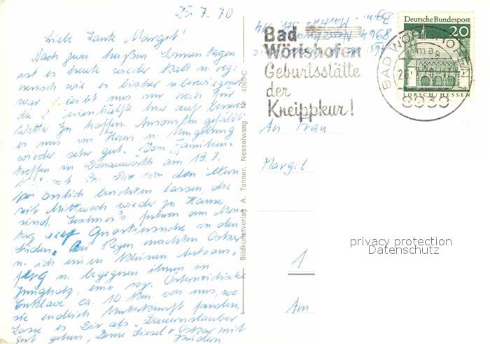 72919629 alte Postkarte Reichenbach Nesselwang Ortsansicht mit Kirche Allgaeuer Alpen Freibad See postalisch gelaufen Erhaltung siehe scans [FriedD77] KatCode: 11110009777153