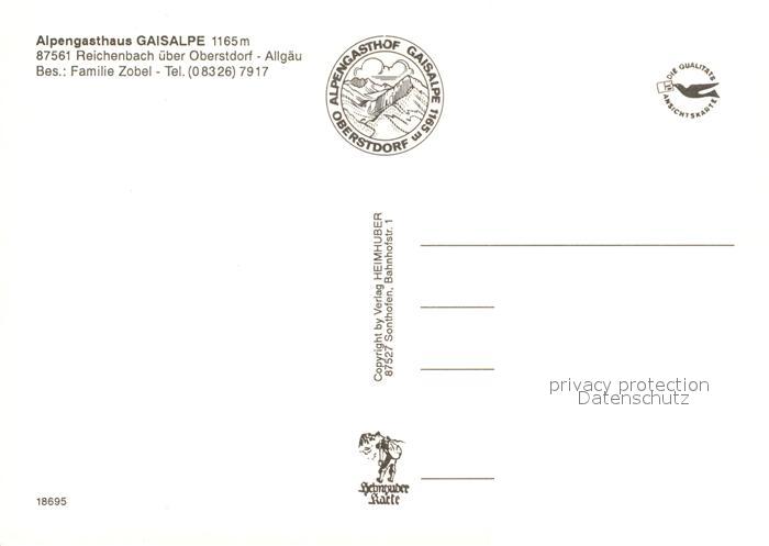 73166961 Reichenbach Oberstdorf Alpengasthaus Gaisalpe postalisch nicht gelaufen Erhaltung siehe scans [KathaD81] KatCode: 11110009780133