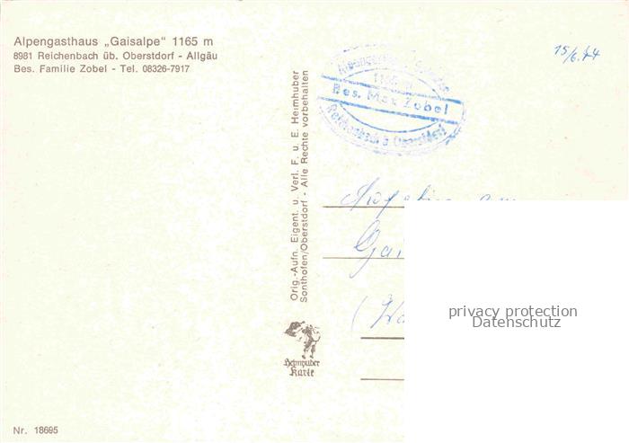 74100238 Reichenbach Oberstdorf Alpengasthaus Gaisalpe Gaisbachtobel Gaisalp Kapelle Nebelhornblick Wasserfall postalisch nicht gelaufen Erhaltung siehe scans [FriedD77] KatCode: 11110009780133