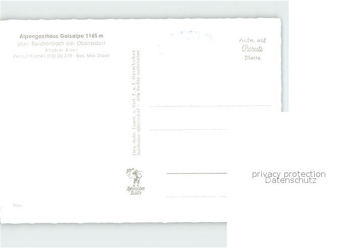 72331614 Reichenbach Oberstdorf Alpengasthaus Gaisalpe mit Rubihorn postalisch nicht gelaufen Erhaltung siehe scans KatCode: 11110009780133