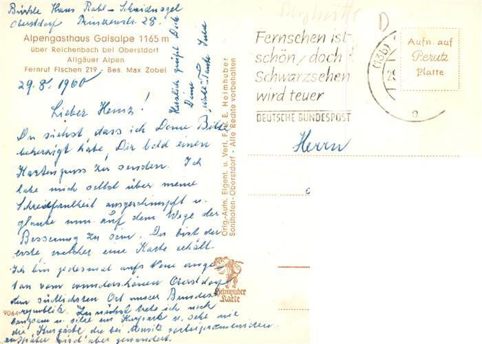 73937195 alte Postkarte Reichenbach Oberstdorf Alpengasthaus Gaisalpe postalisch gelaufen Erhaltung siehe scans [WerneD78] KatCode: 11110009780133