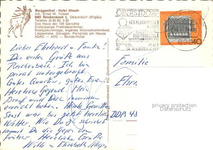 72455815 alte Postkarte Reichenbach Oberstdorf Berggasthaus Hotel Hirsch postalisch gelaufen Erhaltung siehe scans KatCode: 11110009780133