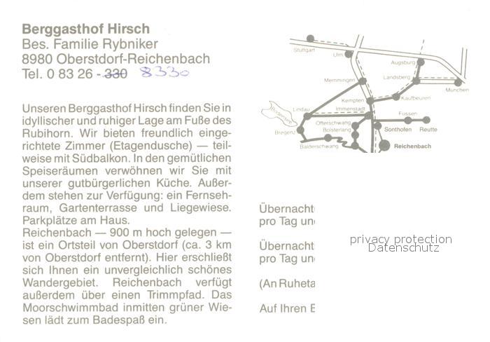 73678506 Reichenbach Oberstdorf Berggasthof Hirsch postalisch nicht gelaufen Werbekarte (keine Postkarte) Erhaltung siehe scans [LiesaD40] KatCode: 11110009780133