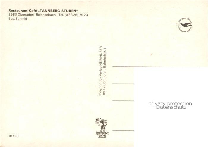 73723588 Reichenbach Oberstdorf Restaurant Cafe Tannberg-Stuben Alpenblick postalisch nicht gelaufen Erhaltung siehe scans [FriedD77] KatCode: 11110009780133