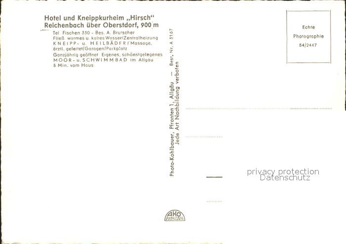 72088955 Reichenbach Oberstdorf Schwimmbad Kurheim Hirsch postalisch nicht gelaufen Erhaltung siehe scans KatCode: 11110009780133
