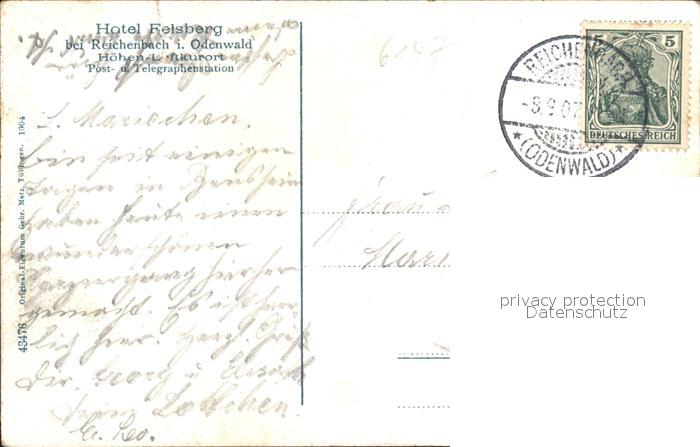 42584556 alte Postkarte Reichenbach Odenwald Hotel Felsberg postalisch gelaufen Erhaltung siehe scans [FriedD77] KatCode: 11110006431014