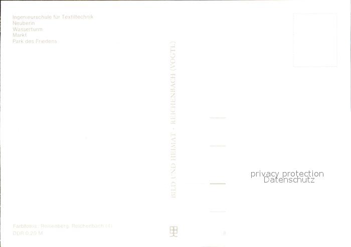 72519070 Reichenbach Vogtland Geburtsstadt Neuberin Wasserturm Markt postalisch nicht gelaufen Erhaltung siehe scans KatCode: 11110014178510