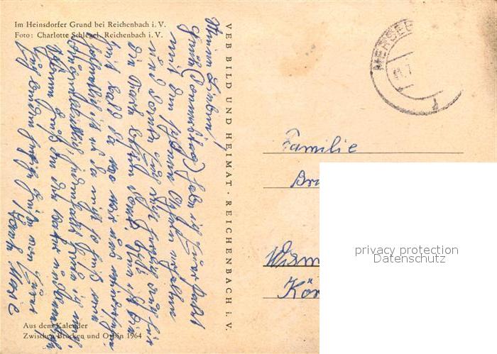72941163 alte Postkarte Reichenbach Vogtland Heinsdorfer Grund postalisch gelaufen Erhaltung siehe scans [NatalD47] KatCode: 11110014178510