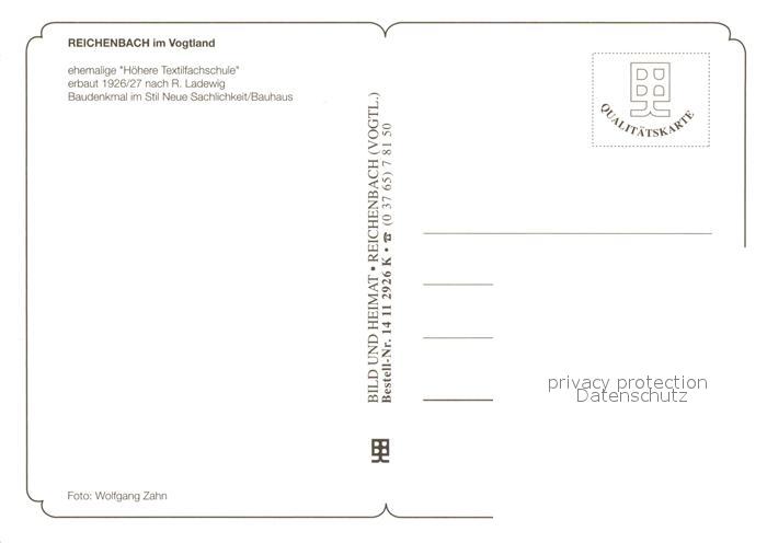 73572004 Reichenbach Vogtland Hoehere Textilfachschule Fliegeraufnahme postalisch nicht gelaufen Erhaltung siehe scans [WerneD78] KatCode: 11110014178510